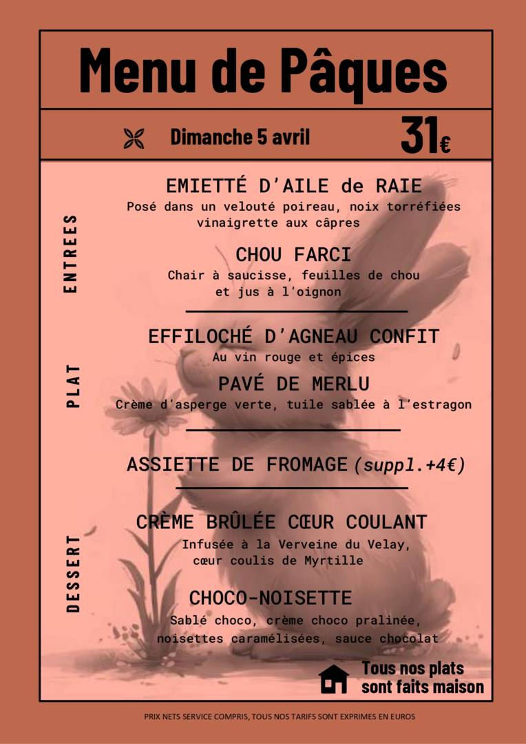 Ici tout est fait maison, nous aimons travailler les produits frais et changer notre carte au fil des(…)