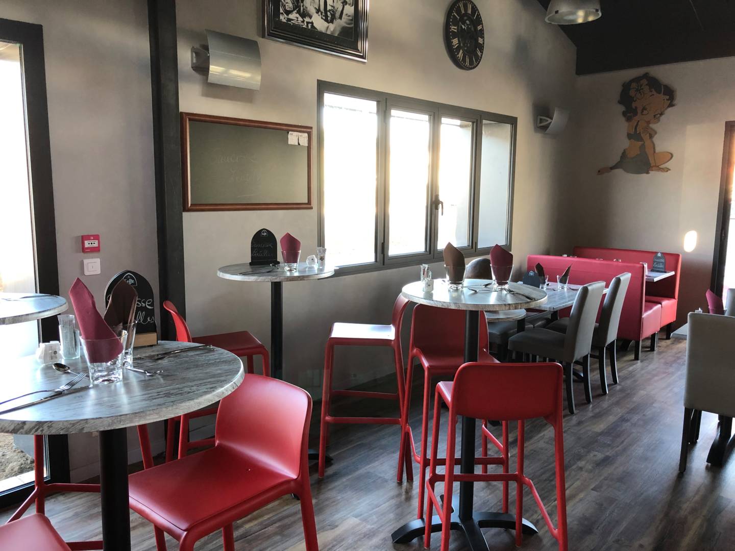 Notre restaurant propose une cuisine à prix modéré : – plats principaux : pièce de bœuf, araignée de veau, tripoux, andouillette, rognons, burger, lasagnes… – Accompagnement : aligot, frites, tagliatelles, ratatouille – Entrées : œufs meurettes, charcuteries, feuilleté pieds de porc, tête de veau, salades composées – Pizzas au feu de bois : calzone, végétarienne, norvégienne… – Desserts : fromages, mousse 3 chocolats, tiramisu kinder, tatin L’offre comprend également une formule menu du jour en semaine (à 11.20€, 14.40€, 16,50€) qui devrait satisfaire la contrainte budgétaire de la clientèle de proximité et de passage. Durée moyenne d’un repas : entre 30 et 90 mn. Accessibilité personne à mobilité réduite. La capacité de l’établissement permet de recevoir des groupes d’entreprise, familiaux, ou encore des bus. Petite nouveauté l’établissement dispose de 4 bornes de recharge électrique rapide à la disposition de la clientèle.