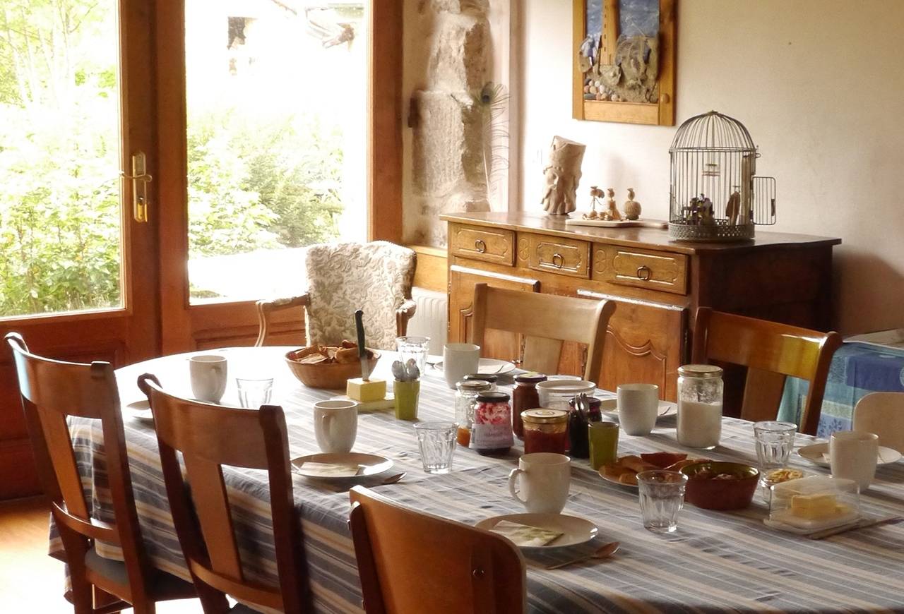 Petit-déjeuner maison avec confitures artisanales (dont celles de la veille, à déguster !).