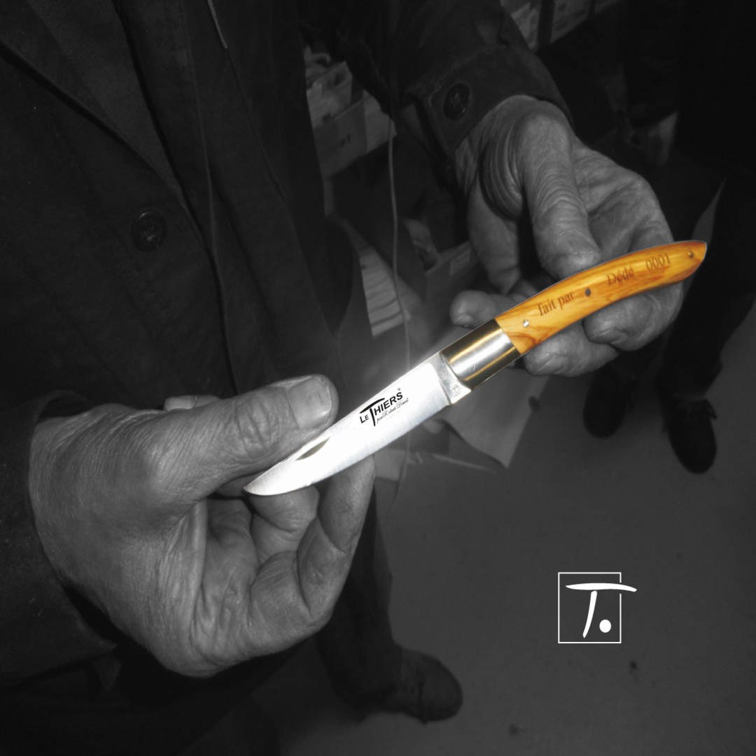Guidé par un artisan, vous passez à l’atelier. Couteau Le Thiers® manche OLIVIER, ressort lisse.